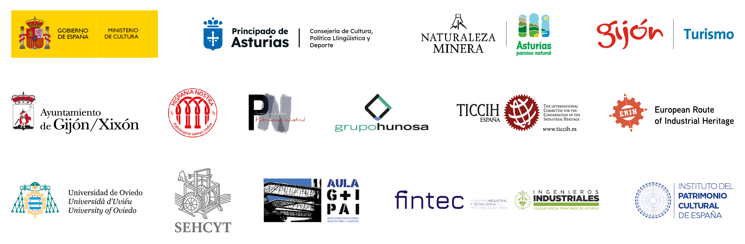 Las Jornadas se organizan cuentan con el respaldo de organismos nacionales e internacionales como: Principado de Asturias, Ayuntamiento de Gijón, ERIH (European Route of Industrial Heritage). Ministerio de Cultura e IPCE (Instituto del Patrimonio Cultural de España). TICCIH (Comité Internacional para la Conservación del Patrimonio Industrial), SEHCYT (Sociedad Española de Historia de la Ciencia y Tecnología), FINTEC (Fundación de Industria y Tecnología); Aula GI+PAI- (ETSAM-UPM,) entre otros.
